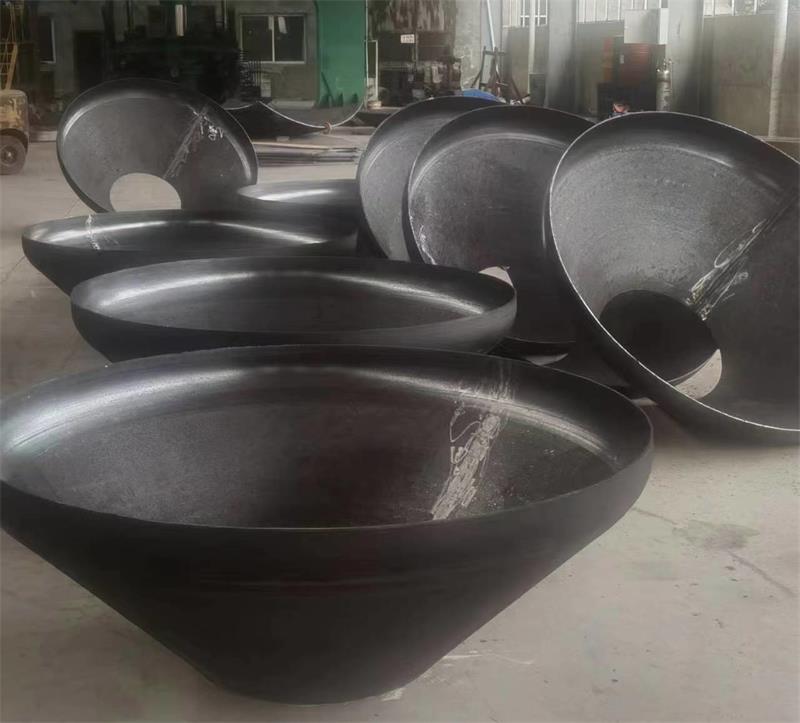 錐形封頭:錐形封頭分為無折邊錐形封頭和折邊錐形封頭。它主要用于兩種不同直徑的筒體的過渡連接,或者用于一些有特殊卸料要求的容器底部,如在面粉加工廠的卸料倉底部,使用錐形封頭可以方便物料的排出。
